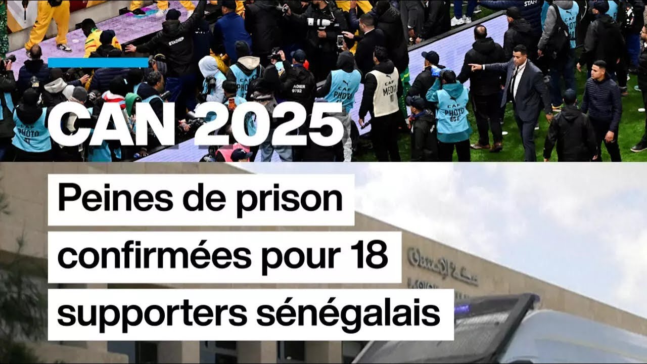 Titre de l’épisode : CAN 2025 : peines de prison confirmées pour 18 supporters sénégalais • FRANCE 24